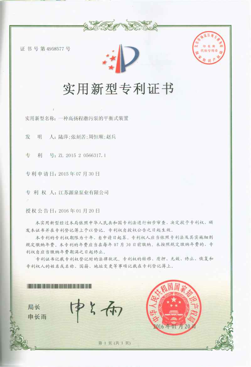 一种高扬程潜污泵的平衡式装置