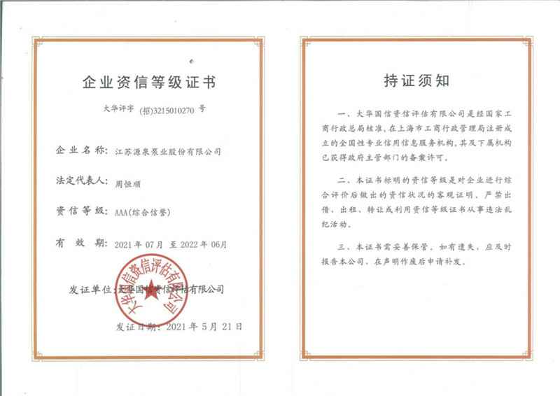 资信等级证书AAA